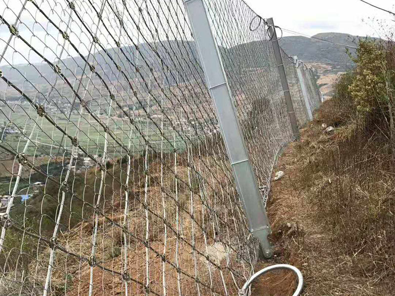 4. RX-075型被動防護網的網孔為菱形,與鋼柱組成一道柔性墻。