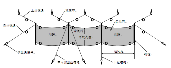 然后就可以安裝鋼絲繩網了,將鋼絲繩網通過縫合繩縫合在上下支撐繩與立柱上。然后進行最后的調試工作,關于菱形被動防護網的安裝就基本完成,有不明白的地方可以與我們的技術人員聯系,聯系電話:0318-8065688